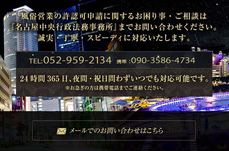 名古屋エリアにおける風俗営業の許認可申請実績がトップクラスです。